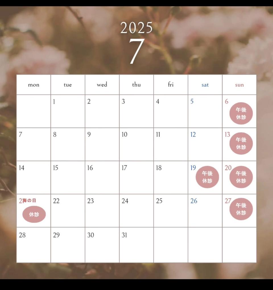 第3土曜日午後休診です