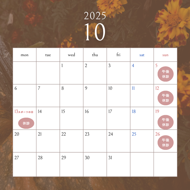 10月カレンダー